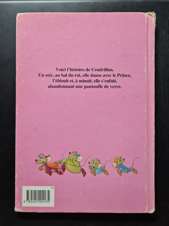 Le conte de Cendrillon, transcrit en cyrillique sur les gardes, est retracé dans les 4 planches à colorier : à gauche, la planche en couleurs, à droite, celle en sépia. On voit Cendrillon nourrissant les oiseaux, au bal avec le prince, le prince éperdu devant le vêtement de Cendrillon, les serviteurs du prince la reconnaissant et lui enfilant la pantoufle de vair. Les costumes s'inspirent de la Renaissance. Annotations manuscrites à la garde inf., dos débroché.