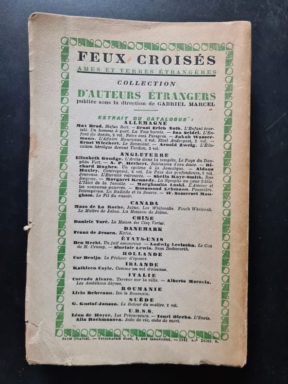 Livre. Traduit de l'anglais par Jeanne Lallemand. Librairie Plon (Collection : Feux croisés), 1948.