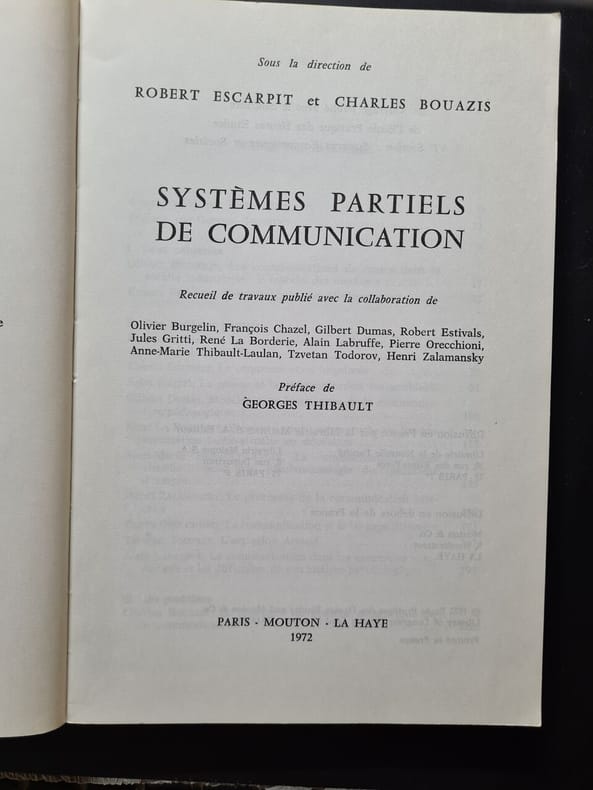 Escarpit (Robert) et Bouazis (Charles), eds. - Olivier Burgelin - François Chazel - Robert Estivals - Jules Gritti - Gilbert Dumas - René La Borderie - Anne-Marie Thibault-Laulan - Henri Zalamansky - Pierre Orecchioni - Tzvetan Todorov sur Artaud - Alain Labruffe