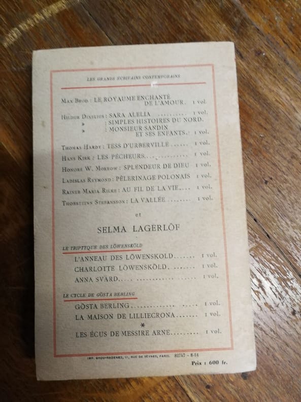 Editions Nilsson, Paris, s.d. [1929]. In-12, broché, 255 pp. Note du traducteur - Introduction : I. Le pasteur - II. Le mendiant - Chapitre I. Le paysage - II. La nuit de Noël - III. Le dîner de Noël - IV. Les loups - V. Le bal à Ekebu ...