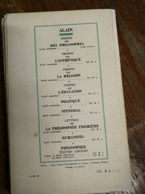 1952 1952. Alain - Propos sur L'education / Presses Universitaires de France 1952