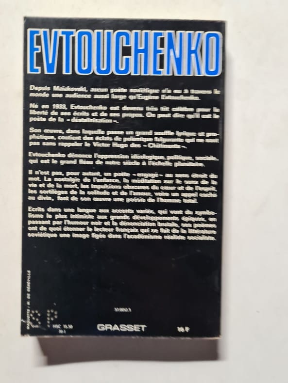 Paris Grasset 1970 1 vol. broché in-12, broché, couverture à rabats, 211 pp. Edition originale française des poèmes traduits du russe par Elisabeth Soulimov. Préface d'Armand Lanoux construite à partir du questionnaire de Proust. Un des 39 exemplaires numérotés sur Alfa, seul grand papier. En excellente condition, non coupé.