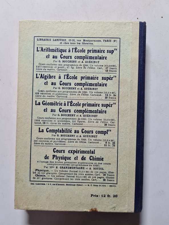 LAROUSSE. 1920. In-12. Relié. Bon état, Couv. convenable, Dos satisfaisant, Intérieur frais. 272 pages. . . . Classification Dewey : 372.7-Livre scolaire : mathématiques