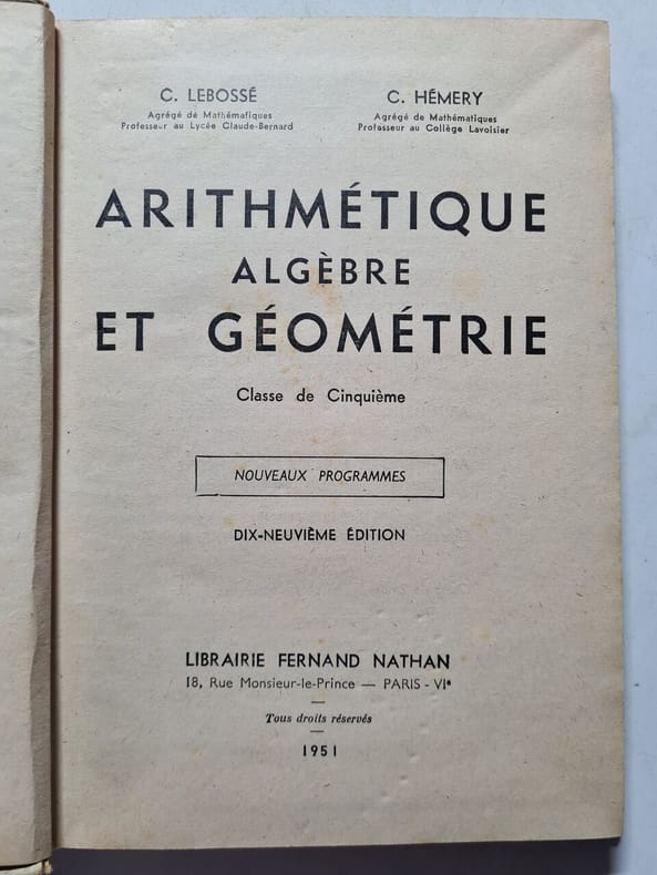 Classification Dewey : 372.7-Livre scolaire : mathématiques