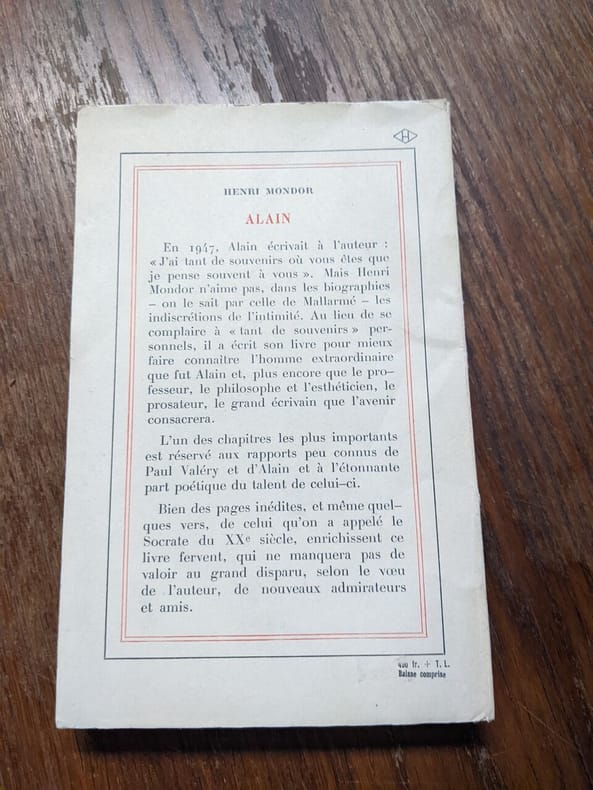 Mortagne-au-Perche : Imprimerie Danguy, 1968. Broché 21x16cm, couverture illustrée d'un portrait photographique d'Alain à l'âge de 18 ans, 64 pages + 6 planches de photos en noir en fin d'ouvrage. [BEG, petites traces d'encre au-dessus du titre en 1e de couverture. Cf.photo]