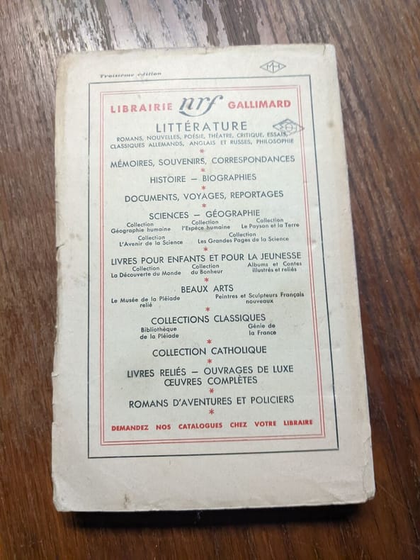Paris Gallimard 1942 1 12x18,5 cm broché,bon état, 224 pp,