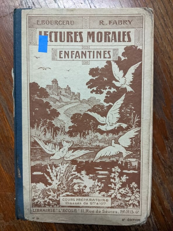 Armand Colin et Cie. Non daté. In-12. Cartonné. Etat passable, Plats abîmés, Dos abîmé, Papier jauni. Pages 27 à 96 + 105 à 114. Nombreuses illustrations en noir et blanc dans le texte. Rousseurs. Nombreux manques, déchirures et pliures dans le texte. Intérieur de la reliure abîmé. Nombreuses annotations au crayon et à l'encre sur les contreplats et dans le texte. Une étiquette sur le 1er plat.. . . . Classification Dewey : 372.4-Livre scolaire : lecture