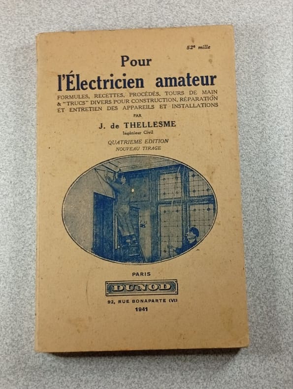 175 figures dans le texte en noir et blanc 4eme édition, nouveau tirage Contents, Chapitres : Préface, table, viii, Texte, 187 pages - Piles et accumulateurs - Moteurs électriques - Canalisations électriques - Isolants - Télécommunications - Eclairage - Chauffage - Construction d'appareils - Travail des métaux spéciaux - Index alphabétique tres legere pliure sur le plat supérieur de la couverture, couverture tres legerement empoussiérée, petites dechirures aux extrémités du dos, papier jauni, sinon bon etat, cela reste un bon exemplaire de lecture - format de poche