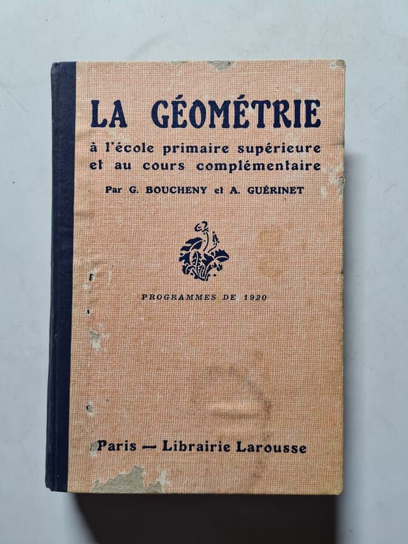 Géométrie plane, notions de géométrie dans l'espace, Projections, Croquis cotés, Arpentage, Levés des plans, Nivellement. Programmes de 1920. Classification Dewey : 372.7-Livre scolaire : mathématiques