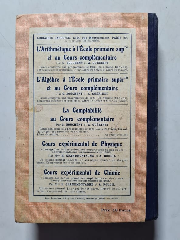 LIBRAIRIE LAROUSSE. NON DATE. In-8. Relié toilé. Etat d'usage, Couv. défraîchie, Dos satisfaisant, Intérieur frais. 424 pages.. . . . Classification Dewey : 372.8-Livre scolaire : autres matières