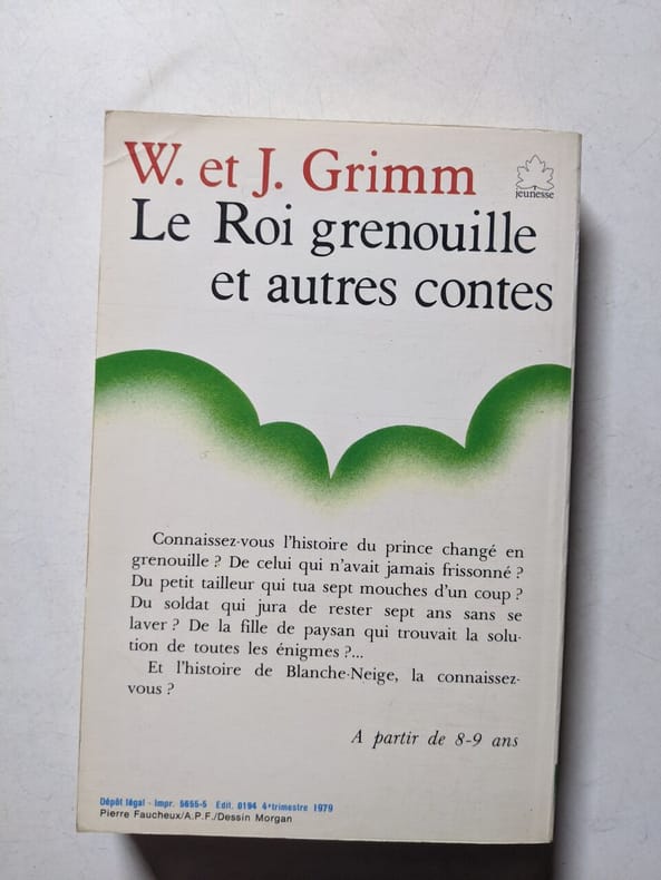 TRADUIT DE L'ALLEMAND PAR PIERRE DURAND - ILLUSTRATIONS MORGAN - APPRENDRE A FRISSONNER - DOUCETTE - LES TROIS FILEUSES - JEANNOT ET MARGOT - LE VAILLANT PETIT TAILLEUR - LES MUSICIENS DE BREME - TOM POUCE - BEC DE GRIVE - BLANCHE NEIGE - BROUMPRISTOCHE - L'ASTUCIEUSES FILLE DU PAYSAN - L'EAU DE LA VIE - PEAU D'OURS - JEAN DE FER - ROSE NEIGE ET ROUGE ROSE - L'OISEAU GRIFFON - LE MAITRE VOLEUR Classification Dewey : 830-Littératures des langues germaniques