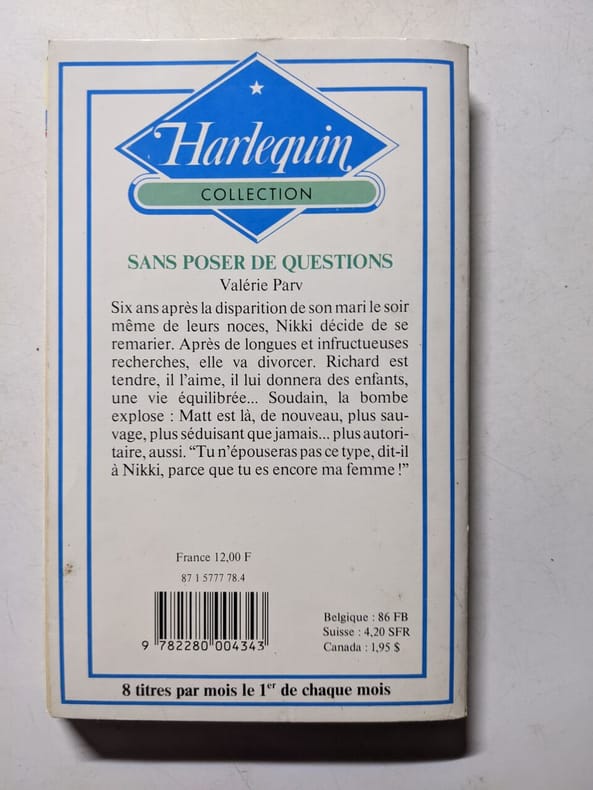 COLLECTION HARLEQUIN N° 730 1987 10 4x1 4x16 6cm. 1987. Broché.