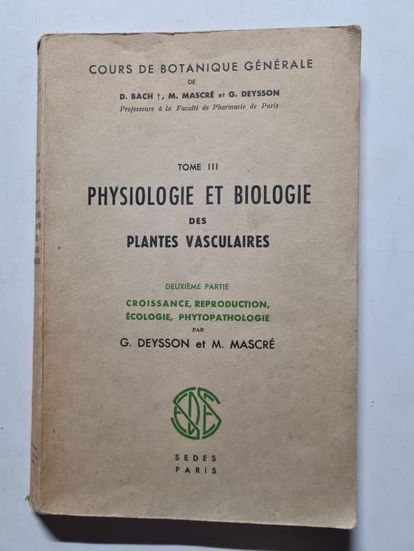 SEDES. 1962. In-8. Broché. Bon état, Couv. convenable, Dos satisfaisant, Intérieur frais. 345 pages - nombreuses figures en noir et blanc dans le texte.. . . . Classification Dewey : 580-Botanique