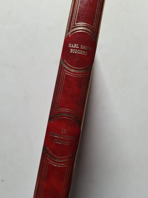 Paris, Perrin, Paris, Perrin1932 ; in-12, broché, couverture illustrée - Derrière ce rideau (Behind that curtain) Traduit de l’anglais par Louis Postif. Paris, Perrin, 1930 ; in-12 broché, couv. illustr. Premières traductions françaises de ces deux romans policiers de Earl Derr Biggers (1884 - 1933) dans lesquels apparaît le personnage du détective américain d’origine chinoise Charlie Chan.Sur les conseils de son médecin, le journaliste et dramaturge avait loué un bungalow dans un hôtel de Hawaii dans les années 20. C’est là qu’il fit connaissance d’un policier chinois de la police de Honolulu, dont il s’inspira pour créer le détective Charlie Chan. Entre 1925 et 1932 Charlie Chan apparaît dans 6 romans. Hollywood s’empare aussitôt du personnage, multipliant les aventures du héros dans une quarantaine de films tournés entre 1926 et 1949 avec tour à tour Warner Oland, Sidney Toler, Roland Winters et Peter Ustinov pour incarner Charlie Chan.Ces deux titres sont les seules traductions faites par Louis Postif (Gouhelans 1887 - Thiers 1942) qui fut aussi le traducteur d’Agatha Christie et le principal traducteur de Jack London. La traduction de Le Chameau noir annoncé en préparation en face du titre du premier texte n’a jamais paru chez Perrin. Les 4 autres romans du cycle Charlie Chan paraîtront chez d’autres éditeurs entre 1939 et 1970.La couverture du 1er titre porte la mention dixième édition (factice sans doute).