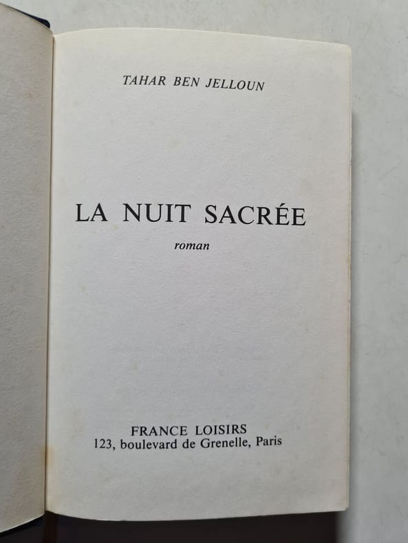 Editions du Seuil 1987 1987. Tahar Ben Jelloun: La nuit sacrée/ Editions du Seuil 1987 . Tahar Ben Jelloun: La nuit sacrée/ Editions du Seuil 1987