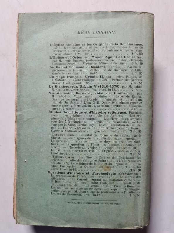 1930 - Paris, Lib. V. Lecoffre/J. Gabalda, Bibliothèque de l'enseignement de l'histoire ecclésiastique -1930 - In-8 - Broché - Préface XV & 451 pages - infimes rousseurs - Propre- Paris, A. Picard , 1892, Sans page de titre - In-12 - 1/2 basane fauve - Dos à 4 nerfs avec titre doré - 136 pages .- Avignon, Fr. Seguin, 1875 - Edition Originale - In-12 -Reliure 1/2 basane - Frontispice - Illustrations P.P. H.T. - 167 pages & 66 pages - Bel ensemble sur la Provence et le Comtat-Venaissin - Bel ensemble Réf. 48688