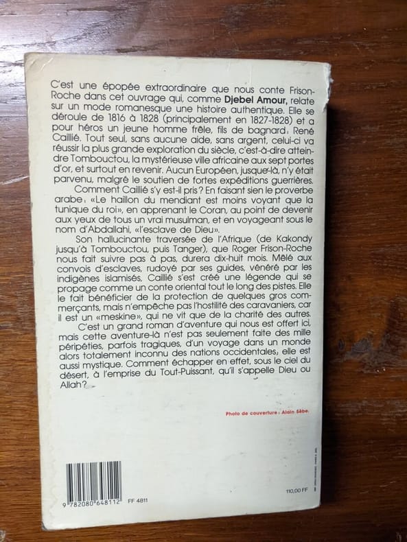J'ai lu 544 pages poche. Sans date. Poche. 544 pages. Le 17 juin 1816 René Caillié s'embarque pour l'Afrique. Il a seize ans et une seule ambition : être le premier à découvrir Tombouctou la cité mystérieuse au cœur de cette Terra Incognita dont aucun Blanc n'est revenu.Lui réussira car il a compris que " le haillon du mendiant est moins voyant que la tunique du roi ". Pour traverser l'Afrique islamisée le chapelet coranique est le meilleur des passeports. Désormais René Caillié s'appelle Abdallahi l'esclave de Dieu et c'est en pèlerin qu'il entrera à Tombouctou. Puis miné par les fièvres défiguré par le scorbut il lui faudra ensuite franchir le désert pour rejoindre Tanger...Hallucinant et authentique périple mais aussi quête mystique un livre fort et riche