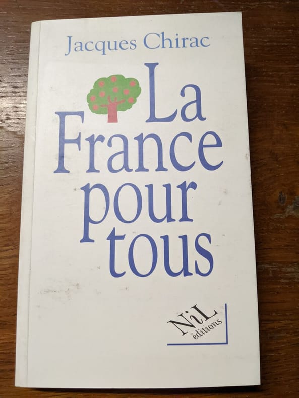 grand in4,Une page avec un petit portrait en couleurs de Jacques CHIRAC par Jacques PECNARD,au dessous il est indiqué "spécialement imprimé pour Monsieur XXX,faux-titre,frontispice en couleurs (Jacques CHIRAC)titre et 198 pages,avec douze belles illustrations originales en couleurs pleine page et des dessins en noir dans le texte de Jacques PECNARD,reliure éditeur plein cuir bleu à grain du cap,tête dorée présenté dans un coffret cartonné dans un beau papier marbré.Sur le milieu du premier plat est incrustée en rouge la représentation géographique de la France avec rayons dorés.Tirage à 1995 exemplaires(année de la parution )très bel état.