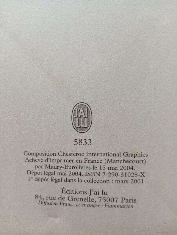 J'AI LU 2004 416 pages 10 2x2 4x17 6cm. 2004. pocket_book. 416 pages.