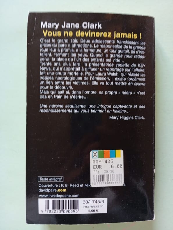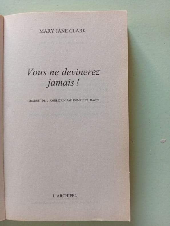 Sans date. Mary Jane Clark: Vous ne devinerez jamais/ France Loisirs . très bon état