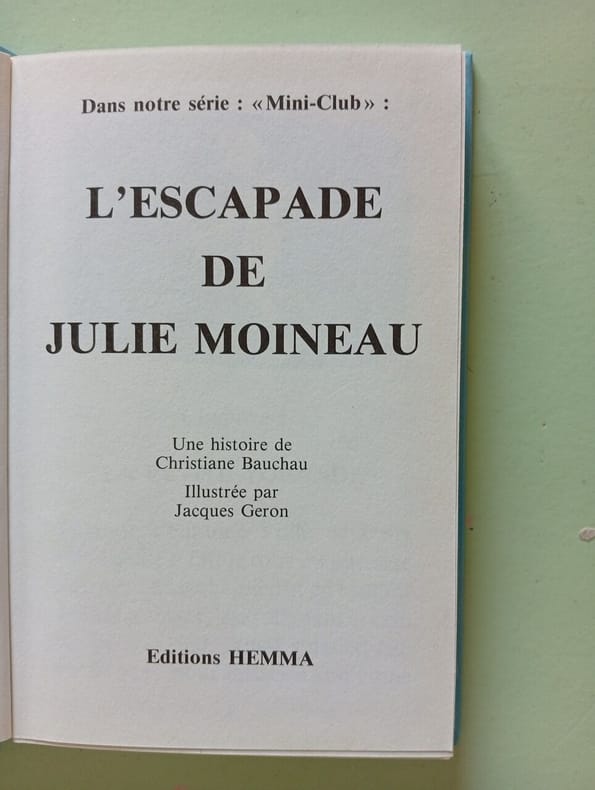 HEMMA Collection Mini-Club Etoile n°7. 1986. In-12. Cartonnage d'éditeurs. Bon état, Couv. convenable, Dos satisfaisant, Intérieur frais. 126 pages. Illustrations en bleu et blanc et en couleurs de Jacques Geron.. . . . Classification Dewey : 843.0692-Livres d'enfants