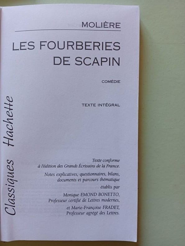 Editions Larousse 1987 1987. Molière: Les fourberies de Scapin/ Classiques Larousse 1987 . Molière: Les fourberies de Scapin/ Classiques Larousse 1987