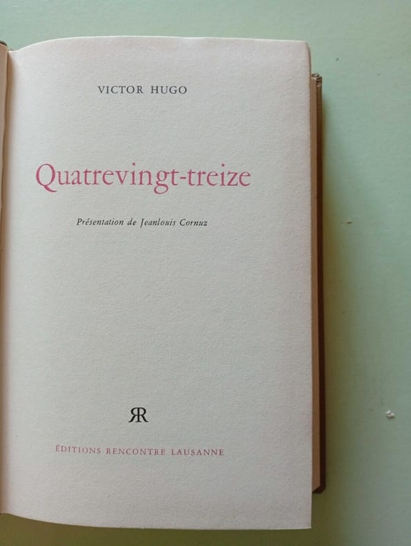 Sommaire: Situation de Victor Hugo, André Maurois. Seule vraie source de Quatrevingt-Treize: Victor Hugo, Raymond Escholier. Quatrevingt-Treize, Victor Hugo. Victor Hugo au centre du romantisme, Henri Clouard. Classification Dewey : 840.03-XVI ème siècle