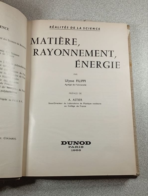 quelques figures dans le texte en noir 1ere édition, édition originale, 1913 "Contents, Chapitres : Texte, 370 pages, table, i - Jean Perrin : Les preuves de la réalité moléculaire (pages 1 à 53, 6 figures) - Paul Langevin : Les grains d'électricité et la dynamique électromagnétique (pages 54 à 114) - Edmond Bauer : Les quantités élémentaires d'énergie et d'action (pages 115 à 147) - Eugene Bloch : La théorie électronique des métaux - M. A. Blanc : L'ionisation par chocs et l'étincelle électrique - L. Dunoyer : Les gaz ultrararéfiés - Madame Pierre Marie Curie : Le rayonnement des corps radioactifs (pages 272 à 303)- A. Debierne : Les transformations radioactives - Pierre Weiss : Les moments magnétiques des atomes et le magnéton (pages 332 à 356) - Henri Poincaré : Les rapports de la matière et de l'éther (pages 357 à 370) - En 1907-1909, Jean Perrin publie une série d'articles sur le mouvement brownien dont il fait une synthèse sous le titre Mouvement brownien et réalité moléculaire publié dans les Annales de Chimie et de Physique en 1909. Cet article, immédiatement traduit en anglais, contribue à sa notoriété scientifique en France et à l'étranger. En 1910, Jean Perrin est promu professeur de chimie physique à la Sorbonne. En 1911, il est élu membre d'honneur de l'Institut de physique de l'université de Berlin. Il est aussi convié au premier congrès Solvay de physique qui se tient à Bruxelles. Ernest Solvay organise ainsi le premier congrès scientifique qui rassemble une vingtaine des plus grands physiciens de l'époque. Les congressistes doivent envoyer leur communication en avance pour qu'elles soient distribuées aux participants avant la réunion. La conférence de Jean Perrin, intitulée ""Les preuves de la réalité moléculaire"", est si claire et argumentée que tous les participants sont convaincus de l'existence des atomes, même les plus sceptiques. En particulier, Wilhelm Ostwald qui, comme chimiste, n'a pas participé à la réunion et qui avait été un opposant déterminé à l'atomisme défendu par son collègue Ludwig Boltzmann, s'est déclaré converti à la lecture de la communication de Perrin Henri Poincaré, jusqu'alors sceptique sur l'existence des atomes, avoue, après avoir entendu l'exposé de Perrin, que « l'atome des chimistes est devenu réalité ». (wikipedia) - Poincaré, décédé l'année de cette conférence en 1912, aborde les relations entre l'éther et la matière, très importantes dans la relativité restreinte (Loi de Rayleigh, action de la lumière sur les molécules ou l'inverses, par rapport aux travaux d'Einstein et aux quanta). - En 1906, Paul Langevin (1872-1946) prépare un cours sur la théorie électromagnétique pour le Collège de France et aboutit au résultat selon lequel l'inertie de l'électron serait une propriété de lénergie. Quelques mois plus tard, il a l'occasion de lire les publications d'Einstein sur la relativité restreinte et saisit le lien entre ses recherches et cette nouvelle théorie révolutionnaire. C'est à partir de ce moment qu'il passe une partie de son temps à répandre la théorie nouvelle. Il est le promoteur de cette théorie en France. Il enseigne pour la première fois la théorie de la relativité dans ses cours au Collège de France en 1910-1911. Il invente le paradoxe des jumeaux, qu'il présente pour la première fois au congrès de Bologne et à la Société française de philosophie en 1911. En 1922, il invite Einstein au Collège de France pour donner des conférences sur la relativité. Henri Bergson, qui avait assisté au congrès de Bologne et aux conférences d'Einstein au Collège de France, publie Durée et Simultanéité en 1922 et Émile Meyerson La Déduction relativiste en 1925. (wikipedia)" couverture propre, bords des plats à peine jaunis, le dos a été consolidé proprement et renforcé au bas du dos, dos un peu empoussiéré avec une légère déchirure sur le haut du dos et un manque de 1 cm sur le bas, le bord des plats a été collé aux pages de gardes sur 3 cms, l'intérieur est sinon très frais et propre, papier à peine jauni, le volume garde une belle allure malgré les défauts indiqués, ce volume regroupe un ensemble de conférences sur la matière avec l'élite de la physique française de l'époque, Poincaré, Curie (un an après le Nobel de 1911), Langevin, Perrin ou encore Edmond Bauer (Assistant de Perrin et collaborateur de Langevin) et Pierre Weiss (magnétisme et aimantation), André-Louis Debierne (Actinium), elles furent données à la Société de Physique, un an après le premier congrès Solvay de 1911 sur les quanta, et après la présentation de la structure atomique d'Ernest Rutherford en 1911.