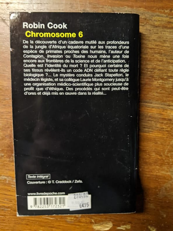 Le Livre de Poche 2002 2002. 5 Robin Cook - Chromosome 6 / le livre de poche 2002