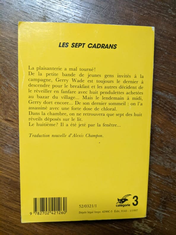 1994 1994. Agatha Christie - Les Sept Cadrans / Club des Masques 1994