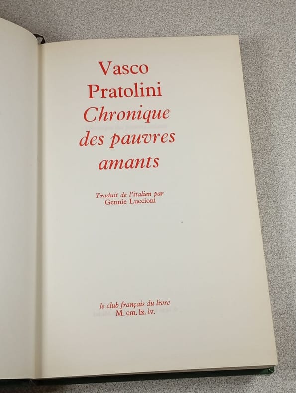 Livre. Traduit de l'italien par Gennie Luccioni. Le club français du livre, 1964.