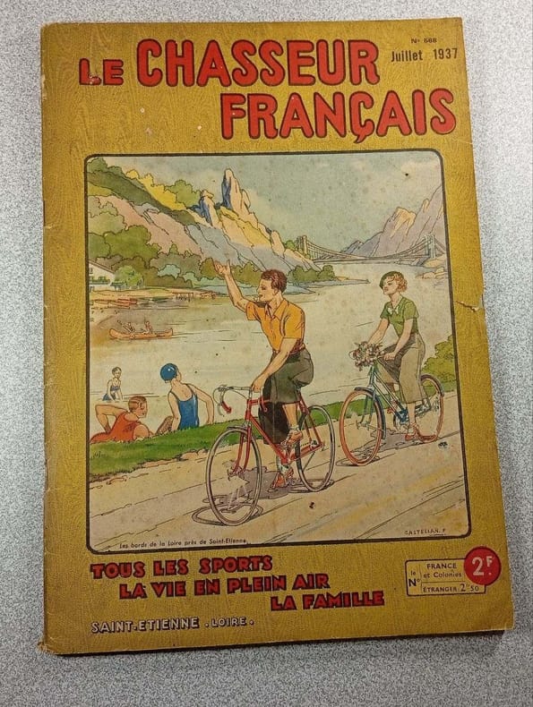 Manufrance Revue 1937 In-4 (18.5 x 26.5 cm), revue au dos agrafé, couverture illustrée en couleurs, 71 pages, iconographie en noir in-texte ; coiffes et coins frottés, angle du 1er plat corné, plats un peu défrraîchis, assez bel état. Livraison a domicile (La Poste) ou en Mondial Relay sur simple demande.