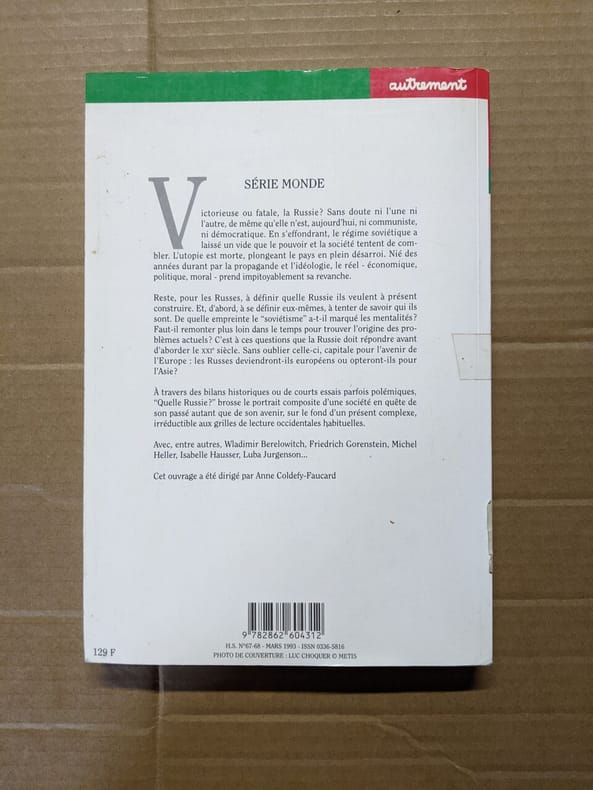 Autrement. 1993. In-4. Broché. Bon état, Couv. convenable, Dos satisfaisant, Intérieur frais. 275 pages.. . . . Classification Dewey : 947-Europe de l'Est, URSS