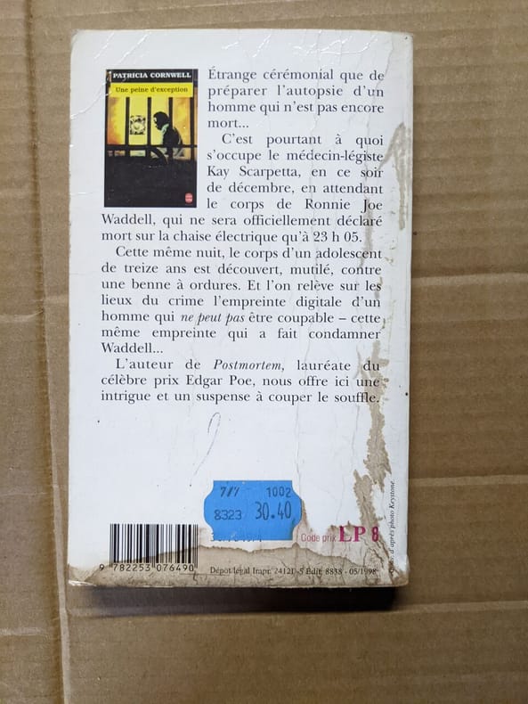 Le Livre de Poche 1994 1994. Patricia Cornwell - Une Peine d'exception / Le Livre de Poche 1994
