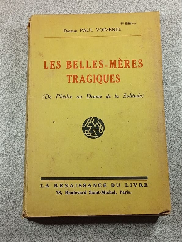 Rare et solide étude sur la psychologie des belles-mères, sous un angle tant psychiatrique, psychanalytique que littéraire. Elle fut motivée par la retentissante affaire Lefèvre (ou "drame du Chemin de la Solitude") : Madame Lefèvre est accusée de l'assassinat de sa belle-fille enceinte de cinq mois, elle est passible de la peine de mort. Dans cette affaire, le Dr Paul Voivenel fut contre-expert. Il plaide la cause psychopathologique et parle de folie raisonnante, il déclenche une bataille de pychiatres tout en se faisant conspuer par la foule et les journalistes. Finalement l'accusée est condamnée à mort. — Paul Voivenel (1880-1975), psychiatre et homme de lettres, fut entre autres le médecin de Rémy de Gourmont. — "Je ne trouve pas de qualiflcatif plus juste à donner au dernier livre du Dr Voivenel (émaillé d’anecdotes, et soutenu de bout en bout par une trame solide de science technique) que l’appellation d’œuvre de « psychiatrie romancée ». Le public très étendu auquel il s’adresse se serait mal accommodé d’une discussion dogmatique de science pure. et notre confrère a réussi avec une réelle maîtrise à masquer l’aridité de son sujet sous un enchaînement continu « d’observations » et de notations d’un prenant intérêt. Servi par une riche érudition littéraire et une originale vivacité de pensée, il a bâti une œuvre bouillonnante de vie. Cette dénomination ne donne pourtant qu’une idée très approximative du mouvement qui anime surtout toute la seconde partie de l’ouvrage. Ces pages, consacrées à la relation d’une expertise au criminel, qui fit l’année dernière quelque bruit, reflètent avec une étonnante puissance d’évocation l’atmosphère de la Cour d’assises, où notre confrère eut à lutter contre certains experts « officiels », drapés dans leur infaillibilité d’augures, contre l’hostilité de la salle, contre la partialité des uns et des autres, et le fit avec une clairvoyante et courageuse ténacité. Sur ses larges épaules, tout cela a glissé et nous y avons gagné un livre où la psychiatrie austère a pris figure de science attrayante et intelligible." (Jean Seval, L'informateur médical, 1928)
