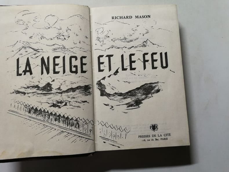 LA NEIGE ET LE FEU Richard Mason vol in-8, 220x130, relié pleine toile, pièce de titre, signature de l'ancien propriétaire en page de garde, 312pp couvertures d'origines conservées, très bel exemplaire ! Presse de la Cité 1963