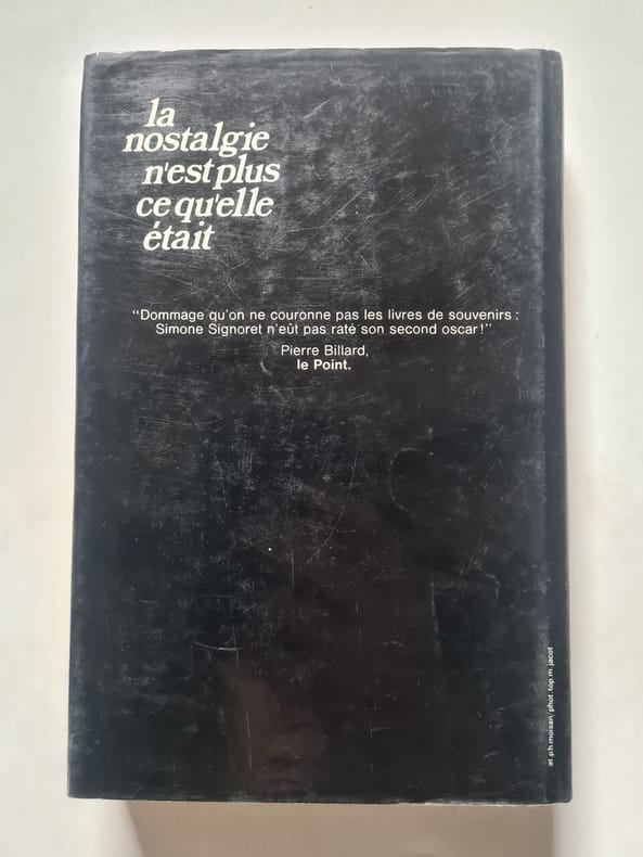France Loisirs 1977 377 pages in8. 1977. Relié jaquette. 377 pages. La nostalgie n'est plus ce qu'elle était Ouvrons ce livre lisons-le. On ne peut pas s'en détacher : il est admirable. Une simplicité une intrépidité dans la franchise. Un itinéraire hors-série. Dommage qu'on ne couronne pas les livres de souvenirs : Simone n'eût pas raté son second Oscar