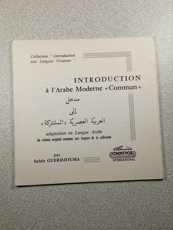 "Adaptation en langue arabe su schéma original commun aux langues de la collection. Collection ""Introduction aux langues vivantes"". Classification Dewey : 490-Autres langues"