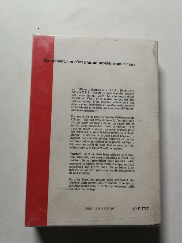 Du refus de l'illettrisme au métier : le Défi du 1/4 monde. Classification Dewey : 2-Le livre