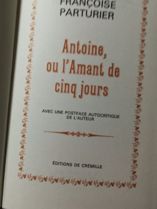 1979 1979. Françoise Parturier: Antoine ou l'Amant de cinq jours / Famot 1975 . Château d'Ancy-le-Franc: Dessins d'Ecrivains / 9 juin - 16 septembre 1979
