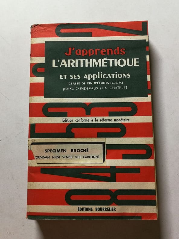 Classe de fin d'études, certificat d'études primaires. Edition conforme à la réforme monétaire. Disponible également en état d'usage (dos abîmé, 1961) à 24.90 euros. Classification Dewey : 372.7-Livre scolaire : mathématiques
