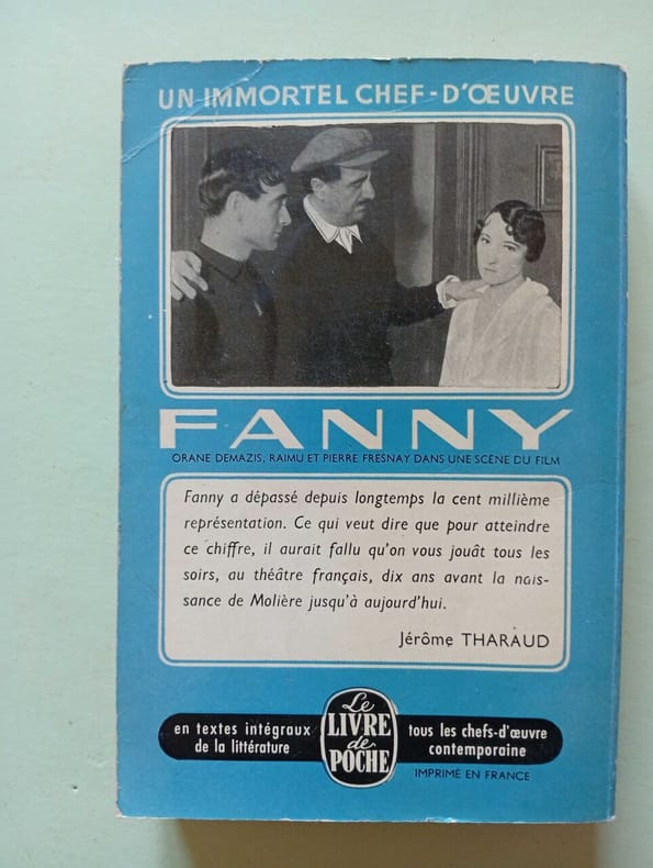 France Loisirs 1990 428 pages in8. 1990. Reliure Editeur avec jaquette. 428 pages. L'ouvrage de Marcel Pagnol composée de 'Marius' 'Fanny' raconte l'histoire d'amour entre Marius fils du barman César obsédé par la vie de marin et Fanny marchande de coquillages. Leur relation est mise à l'épreuve lorsque Marius quitte Fanny pour embarquer la laissant enceinte et confrontée au déshonneur social de l'époque