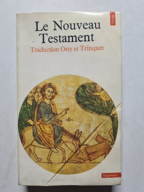 Edition à la même date que l'originale parue à l'adresse de Migeot à Mons en deux volumes. Elle reprend aussi le même frontispice dessiné par Philippe de Champaigue, mais gravé ici par Claude Burnand. Cette traduction du Nouveau Testament, dite de Mons avait été commencée par Antoine Le Maistre, continué par Antoine Arnauld et Louis-Isaac Le Maistre de Sacy. La préface est attribuée à Pierre Nicole et Claude de Sainte-Marthe. La publication du reste de la Bible se poursuivra jusqu'en 1696, accompagnée de "grandes explications" et de "courtes notes", même si le Nouveau Testament avait été mis à l'index peu après sa parution. (Brunet V, 749).La présente édition a été clairement identifiée comme une contrefaçon lyonnaise de l'imprimeur Antoine Jullieron dans une étude de 1987 : BONNEFON Christine, COME Delphine, DESSERVETTAZ Kari, MANFRIN Frédéric, SILLET Arnauld-Amaury : "Contribution à l'identification de quelques contrefaçons de la fin du XVIIe siècle : l'exemple du Nouveau Testament dit de Mons". Enssib.fr/ bibliothèque numérique. Mémoire de recherche. 2004.
