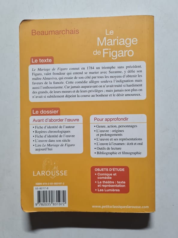 Jules tallandier 158 pages in8. Sans date. reliure éditeur demi basane dos à nerfs. 158 pages. Il s'agit de l'édition par Jules Tallandier début 1900 de deux pièces majeures de Beaumarchais 'Le Barbier de Séville' (1775) et 'Le Mariage de Figaro' (1784) formant les deux premières parties de sa trilogie centrée sur le valet Figaro. La première est une comédie d'intrigue où le Comte Almaviva aidé de Figaro séduit Rosine tandis que la seconde plus audacieuse et politique critique l'aristocratie à la veille de la Révolution