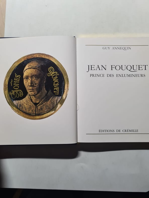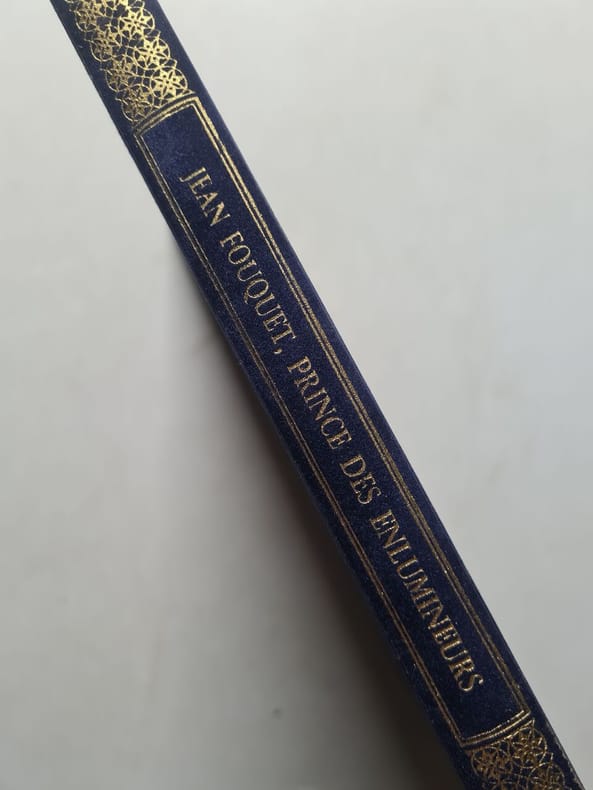 Genève, éditions de la Crémille, 1989. Un volume de format in 4° de 128 pp.; sur beau papier glacé; reproductions soignées de l'oeuvre de Jean Fouquet dans sa quasi intégralité. Reliure de l'éditeur en plein velours bleu-Roi; riches encadrements de guirlandes dorées, titre doré au dos.