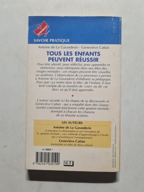 nouvelle édition de 1991 Contents, Chapitres : Antoine Payen de La Garanderie, né le 22 mars 1920 à Ampoigné (Mayenne) et mort le 27 juin 2010 à Paris, est un pédagogue français. Il a développé des théories sur la « gestion mentale » en matière d'apprentissage. - Ses recherches s'inscrivent dans le cadre de la phénoménologie, la « phénoménologie des actes de connaissance » et il conceptualise une pédagogie à partir de ce qu'il appelle la « didactique des actes de connaissance ». Il propose également une éthique du connaître qui questionne la relation pédagogique. Il étudie les motifs de la réussite et de léchec des étudiants, et décrit les processus intervenant dans la réflexion et l'apprentissage, en affirmant notamment la nécessité d'enseigner aux élèves les processus cognitifs pour toute acquisition du savoir. En proposant ainsi une didactique des actes de connaissance, il s'inscrit dans la perspective de la pédagogie différenciée, qui s'efforce de rendre l'élève acteur de son apprentissage. (source : Wikipedia) couverture à peine jaunie, avec une infime trace de pliure au coin inférieur du plat inférieur, sinon en bon état, intérieur propre, papier à peine jauni, cela reste un bon exemplaire
