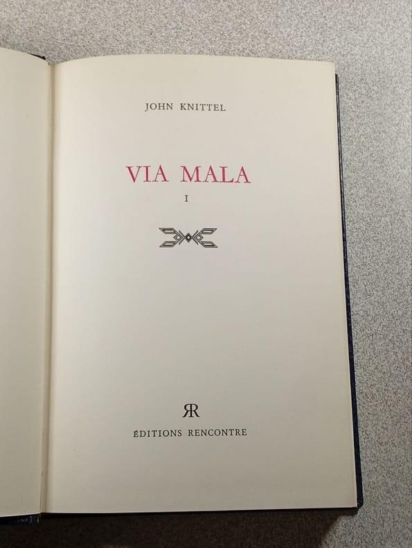 Editions Rencontre 1941 1941. John Knittel: Via Mala I/ Editions Rencontre 1941