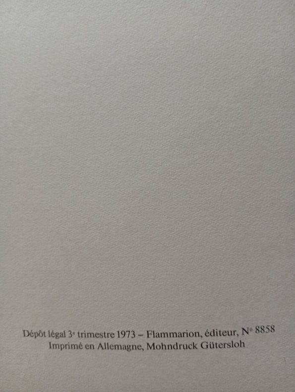 1973 pleine reliure en skivertex bleu-marine grand in-octavo sous jaquette illustrée en couleurs - à rabats imprimés et illustrés - (full binding imitation leather in-octavo with dustjacket illustrated in colours in-octavo), toutes tranches lisses (all smooth edges), pages de garde blanches (white endpapers), page de faux-titre (half title page), illustrations photographiques en noir et en couleurs (photographic illustrations in black and in colours) et iconographie de (and iconography of) Marie-Noëlle Favier, 304 pages, 1973 à Paris Flammarion,