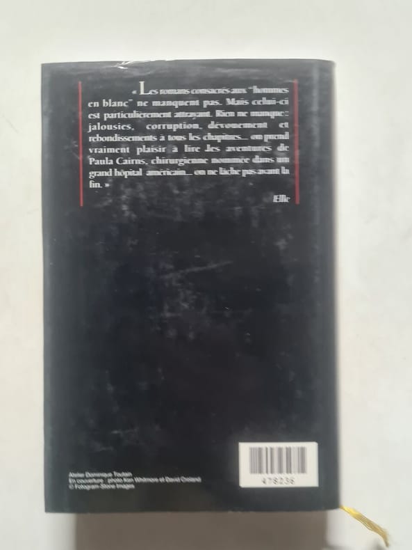 France Loisirs 1998 446 pages 1998. 446 pages. Paula Cairns est belle intelligente et… célibataire. Qui plus est elle vient d'être nommée chirurgien dans l'un des hôpitaux les plus côtés de la Nouvelle Angleterre. Sa carrière s'annonce bien et ses recherches sur l'élimination des caillots sanguins vont bon train.Mais plus ses recherches avancent plus un danger imminent la menace. Comment deviner que certaines personnes en vue veulent lui voler le résultat de ses recherches une découverte qui pourra sauver des millions de vies ?. Corruption soupçons pots de vin chantages se tissent une toile solide dans laquelle Paula va se retrouver emprisonnée rapidement. Son intelligence va-t-elle réussir à la sauver ? Et comment va-t-elle réussir à distinguer ses vrais amis parmi cet amas de personnages tous plus faux les uns que les autres ?. Ce merveilleux roman va nous entraîner dans un monde aseptisé où les hommes auront vite fait de tout souiller. La face cachée de cet univers va se révéler avec tout le suspense et les rebondissements que l'on attend d'un excellent roman