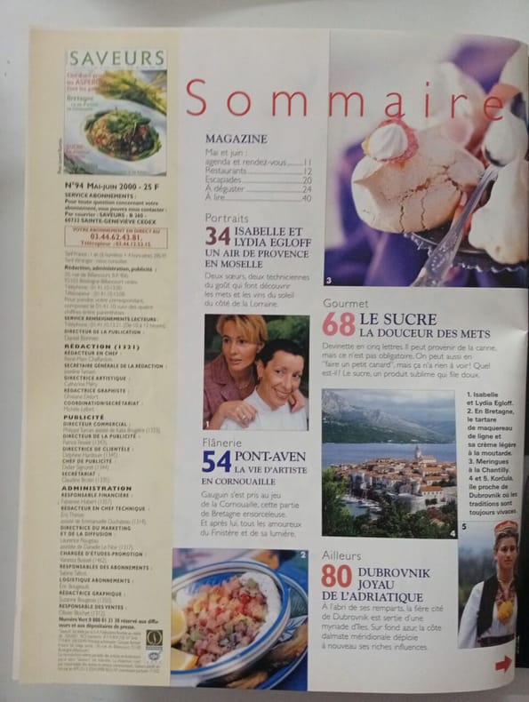 Sommaire : Isabelle et Lydia Egloff un air de Provence en Moselle - Pont-Aven: la vie d'artiste en Cornouaille - Le sucre, la douceur des mets - Dubrovnik, joyau de l'Adriatique - Les asperges de fines pointes - Spaghettis à la folie - Côteaux-d'Aix-en-Provence, les vins du soleil,etc. Classification Dewey : 70.49-Presse illustrée, magazines, revues